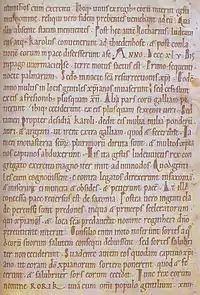 The Annales Xantenses or Annals of Xanten are a series of annals which adapt and continue the Royal Frankish Annals. Their first editor, Georg Pertz, thought they were perhaps written at the monastery at Xanten, hence their name. However, according to Heinz Löwe, the entries from 790 to around 860 were probably written at Lorsch by Gerward, a royal chaplain.[1] Löwe suggests that the manuscript subsequently passed to Cologne, and around 871 new entries were written there, for the years from 861 onwards. This part of the text is hostile to Archbishop Gunthar of Cologne.