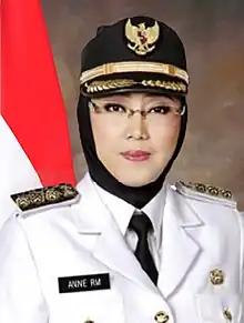 Anne Ratna Mustika (born 28 January 1982) is an Indonesian politician who is the regent of Purwakarta from 2018 to 2023, succeeding her husband Dedi Mulyadi when his second term of office expired. She was the first female leader of the regency.