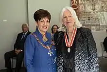 During the annual Blake Awards ceremony in Auckland in 2020, Salmond received the Blake medal in recognition of her work to build intercultural understanding between Māori and Pākehā. James Gibson, CEO said that "Dame Anne Salmond is one of New Zealand's most outstanding leaders and trail-blazers...[and]...her life-long study of Māori culture, and her efforts to improve intercultural understanding between Māori and Pākehā has improved New Zealanders' understanding of their own history".[54] In the 2021 New Year Honours, Salmond was appointed to the Order of New Zealand for services to New Zealand.[55][56]