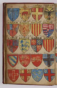 Page 5 of the Armorial Le Breton owned by Anne - The Armorial Le Breton, the oldest illustrated armorial preserved in France.