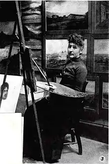 She began working in William Keith's studio in the early 1880s; the works she exhibited in her first show in 1885 centered on images of the California hills in emulation of her teacher's style. Throughout her life, she sketched from nature, but finished her paintings back in the studio.[2] She was known to paint miniatures on cigar box lids, as well as using traditional canvas.[3]