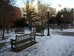 Anniversary Park is an urban park located at the south end of the George Washington University campus, on F St NW, between 21st and 22nd St NW, in Washington, D.C. The park commemorates George Washington University's 175th anniversary and contains benches, a garden and grills.[1] It had a dedication ceremony in October 1997 with a dedication from former DC mayor Marion Barry.[2] As part of the GW Alumni Brick Program, bricks for the class of 1996 are located in Anniversary Park.[3] There is also a memorial plaque and flowers for alumni who were killed in the September 11, 2001 terrorist attacks.[4]