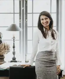 Instead of becoming a vetenerarian as initially intended, she opted to study law and business which later influenced her policy making.[10] She gained experience working at the United Nations as well as the corporate sector[11] whilst running a social enterprise. Having read for an undergraduate degree in law, she graduated with a master's degree from the Judge Business School of the University of Cambridge.[12][13]