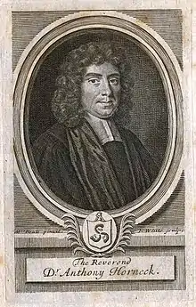 Anthony Horneck FRS (German: Anton Horneck; 1641–1697) was a German Protestant clergyman and scholar who made his career in England. He became an influential evangelical figure in London from the later 1670s, in partnership with Richard Smithies, curate of St Giles Cripplegate.[1]