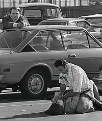 Taking up freelance photography as a profession, Roberts was carrying his camera in 1973 when he encountered a man attempting to abduct a woman from a Hollywood parking lot in broad daylight. Brandishing and clicking the camera in an attempt to deter the assailant, he captured the struggle and subsequent fatal shooting of the attacker by a security guard. The resulting series of pictures ran in the following day's Los Angeles Times, and were carried by the Associated Press, which nominated them for the 1974 Pulitzer Prize for Spot News Photography. The series, entitled "Fatal Hollywood Drama" won not only the Pulitzer but the Sigma Delta Chi Award, given by the Society of Professional Journalists.[3][4]