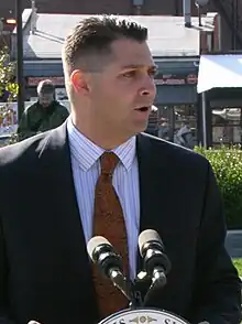 Anthony W. Petruccelli (born October 2, 1972) is an American politician who served as a Massachusetts state senator for the First Suffolk and Middlesex district, which includes his neighborhood of East Boston and parts of Revere, Winthrop, and Cambridge. He is a Democrat who served from 2007 to 2016. In 2016, Petrucelli left the Senate to join a Boston lobbying firm.[1] Prior to serving in the Senate, he was a state representative from 1999 to 2007.[2][3] Petruccelli was born and raised in East Boston, parents are Richard and Dianne (Tanner) Petruccelli. He is one of four children, Richard, Debra and Diana. He attended East Boston Central Catholic School, Boston Latin, and Boston College High School, where he was a 3 sport varsity athlete. He attended and played football at the University of Rochester in Rochester, NY. Upon completing 4 years at the University of Rochester, he returned home where he served as a Community Liaison for the East Boston Neighborhood to Mayor Thomas Menino.