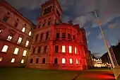 ![]() The Foreign and Commonwealth Office lit up in red in honor of Anti-Slavery Day in 2018 | |