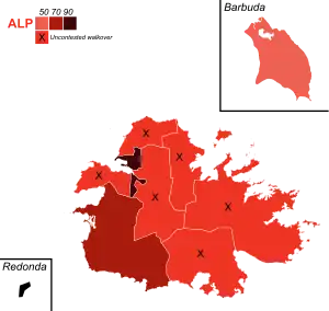 | Antigua Labour Party | 2,128 | 85.02 | 10 | +2 | |