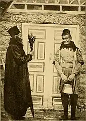 The designation "Greek" refers to the use of Koine Greek in liturgy,[56] not to ethnicity; most Antiochian Greek Christians identify themselves as Arabs.[57][58][59] During the First Crusade era, most of them were referred to as Syriacs ethnically and Greeks only in regard to religious affinity: only the inhabitants of Antioch city were thought to be Greek ethnically.[60] However, some sources label them with a Greek identity.[61] According to Greek historian Pavlos Karolidis writing in 1908, they are a mixture of ancient Greek settlers and particularly Macedonians, Roman-era Greeks, and Byzantine Greeks ("Rûm"), as well as indigenous Levantines.[62] Karolidis was attempting to refute the Russian claims that they were of Aramaic origin.[63] They were included as Greeks in an ethnographic study published by French historian and ethnographer Alexander Synvet in 1878.[51]