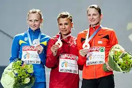 Möldner-Schmidt (right) at the podium in Helsinki 2012