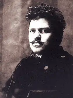 His wife fell seriously ill in 1908, making it necessary to travel to Dubrovnik for treatment, and he broke his arm during their stay there.[1] After it had healed, in August 1909, they took a vacation to the Orlické Mountains and, while he was swimming in the Zdobnice River, he had a stroke that paralyzed his right side. A long period of recovery followed. He made several attempts to paint with his left hand, but the results were disappointing. Soon after, he shot himself while "in a state of insanity", according to the death certificate.[2] His widow, Bohumila, married a family friend, the painter Herbert Masaryk; son of Tomáš Masaryk.