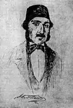 In 1848, he published a lexicon of words and expressions in Romanian, Russian, and Ottoman Turkish.[2] Later in the same year, Pann sided with the liberal revolutionaries in their action against Prince Gheorghe Bibescu, was a supporter of the new Wallachian Provisional Government, participating in popular rallies in Craiova and Râmnicu Vâlcea (see 1848 Wallachian revolution).[1][2] The following year, after falling severely ill, he wrote down the first version of his testament in verse (Adiata), in which he asked to be buried in Viforâta Monastery (where he hoped that his wife Catinca would become a nun).[2] After a series of other satirical works, Pann produced a collection of writings centered on the figure of Nastratin Hogea and owing inspiration to Balkan folklore at large (first published in 1853).[2][3]