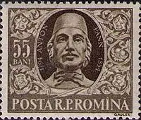 Mihai Eminescu, one of Romania's most influential poets, made a reference to Pann in his poem Epigonii (1870), which, in its opening verses, traces the development of early literature and the impact of Romanticism. Cited alongside Dimitrie Cantemir, Dimitrie Țichindeal, Vasile Cârlova, Ienăchiță Văcărescu, Alexandru Sihleanu, Ion Heliade Rădulescu, Cezar Bolliac and others, Pann is referred to as the son of Pepelea, the witty hero of folk literature, and complimented with the words "as clever as a proverb".[1][16] During the interwar period, the works of Anton Pann were reflected and complimented in the modernist poetic art of Ion Barbu.[17] Barbu's Nastratin Hogea la Isarlâk uses Pann's main character to tragic effect, depicting, in willing contrast to the proverbial setting, Nastratin's violent self-sacrifice.[17] George Călinescu noted that Pann's "mix of buffoonery and seriousness" present in the works of poet Tudor Arghezi, came "in the line of Anton Pann".[18]