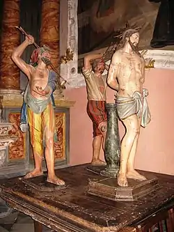 - Polychrome wood tableau (1836-7) of Flagellation of Christ for the Parochial Church of San Michele Arcangelo, Cortemilia (Cuneo).