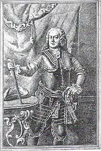 Antonio de Villarroel y Pelaez (1656, Barcelona – 1726, A Coruña) was a Spanish military commander in the service of Philip V until 1710 in the War of the Spanish Succession. After the disgrace of Philippe II, Duke of Orléans, under whom he served and who plotted to replace Philip V, he switched to the Habsburg cause of Charles VI, keeping his rank. In 1713 he was appointed general commander of the Army of Catalonia.[1]