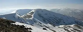 ![]() Aonach Beag (centre) with Beinn Eibhinn to the left and Ben Nevis in the far distance on the right | |