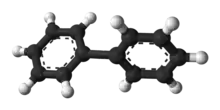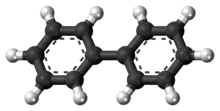 The biphenyl molecule is a simple organic molecular compound consisting of two phenyl rings bonded by a central C-C single bond, which exhibits a modulated molecular crystal structure. Two competing factors are important for the molecule's conformation. One is steric hindrance of ortho-hydrogen, which leads to the repulsion between electrons and causes torsion of the molecule. As a result, the conformation of the molecule is non-planar, which often occurs when biphenyl is in the gas phase. The other factor is the -electron effect which favors coplanarity of the two planes. This is often the case when biphenyl is at room temperature.[4]
