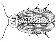 Apthoroblattina is an extinct genus of primitive cockroaches from the Carboniferous period. Fossils of the genus have been found in England, Wales, the United States, and Russia.[1] The paratype specimen for the species, A. johnsoni, is recorded to have a total length of 43 mm and a width of 38 mm,[2] while the type specimens of A. sulcata is noted to have been up to 45 mm in length and 25 mm in width if complete.[3]
