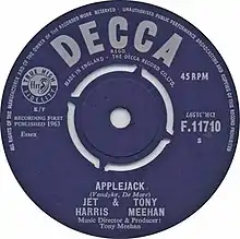"Applejack" is an instrumental by Jet Harris and Tony Meehan, released as a single in August 1963. It peaked at number 4 on the UK Singles Chart.[2]