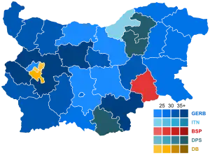 - ↑ Combined results of separate coalitions led by Yes, Bulgaria! and DSB. The former achieved a result of 2.88%, while the latter won 2.48% of the vote.