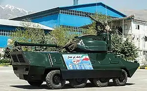 The Aghareb (Persian: آقارب) is an Iranian designed and built eight-wheel drive armored fighting vehicle (AFV).[1] The Iranian armed forces categorizes the vehicle as a wheeled fire support system with inherent battlefield reconnaissance functionality.[1] The Aqareb is based upon the chassis of the Soviet BTR-60PB.[1][2][3] The vehicle was unveiled on the 15th of April 2015 by the then commander of the Iranian Army’s Ground Forces Brigadier General Ahmad Reza Pourdastan.[2][3]
