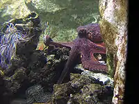 A female octopus making a wall to block access to the cave