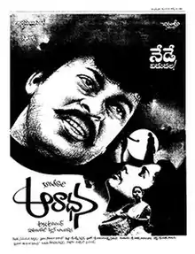 Aradhana (transl. Admiration) is a 1987 Indian Telugu-language romantic musical film directed by Bharathiraja.[2] It stars Chiranjeevi, Suhasini, Rajasekhar and Radhika. The music was scored by Ilaiyaraaja. Allu Aravind produced this film on his home production, Geetha Arts. It was a remake of Bharathiraja's Tamil film Kadalora Kavithaigal.[3] The film was released on 27 March 1987, and was a box office failure.[4]