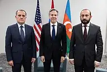 Ararat Samveli Mirzoyan (Armenian: Արարատ Սամվելի Միրզոյան; born 23 November 1979) is an Armenian politician currently serving as the Minister of Foreign Affairs of Armenia. Before this, he served as President of the National Assembly of Armenia from January 2019 to August 2021.