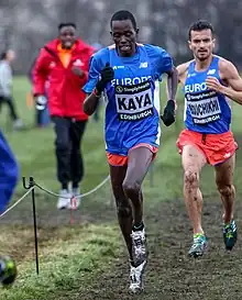 Aras Kaya (born Amos Kibitok on 4 April 1994[2] in Kenya) is a Turkish suspended long-distance runner. He won the silver medal in the 3000 metres steeplechase at the 2016 European Athletics Championships. Kaya earned four individual medals at the European Cross Country Championships, including two golds.