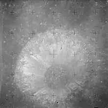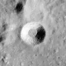 Aratus is a small lunar impact crater located on the highland to the south and east of the rugged Montes Apenninus range. It is a circular, cup-shaped crater with a relatively high albedo. It was named after Greek astronomer Aratus of Soli.[1] To the east is the Mare Serenitatis, and to the southwest is the somewhat larger crater Conon. North-northeast of Aratus is the landing site of the Apollo 15 mission, just beyond Mons Hadley Delta.