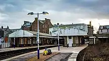 Arbroath railway station serves the town of Arbroath in Angus, Scotland. The station is 17 miles (27 km) east of Dundee on the line between Dundee and Aberdeen, between Carnoustie and Montrose. There are two crossovers at the north end of the station, which can be used to facilitate trains turning back if the line south to Carnoustie is blocked.[4] ScotRail, who manage the station, provide most of the services, along with CrossCountry, London North Eastern Railway and Caledonian Sleeper.