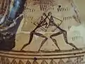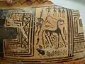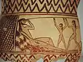 Items of note in the Argos Archaeological Museum include a Minoan style bridge-mouthed pot of sub-Mycenaean times, a reddish pot (460–450 BC) representing the fight of Theseus and the Minotaur, attended by Ariadne, a compass of the early geometric times, which is decorated with meanders and parallel lines, and a mosaic floor excavated from a house of the 5th century, in which symbols represent the twelve months.[1][2]