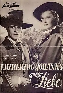 Archduke Johann's Great Love (German: Erzherzog Johanns große Liebe) is a 1950 Austrian historical romantic drama film directed by Hans Schott-Schöbinger and starring Marte Harell, O.W. Fischer and Christl Mardayn.[1]