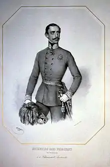 A son of the "hero of Aspern", he started his military career in Infantry Regiment 57 in Brno. Later, he received command of a brigade in Italy and fought against the insurgents in Prague in 1848.