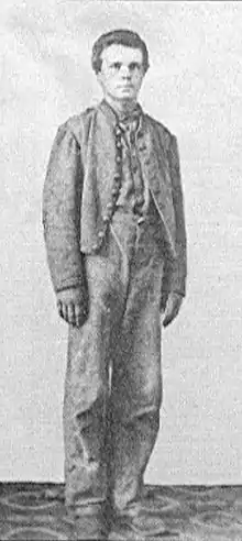 At the time of his enlistment for Civil War military service during the summer of 1862, Arch Rowand was employed as an auditor's clerk for the Fort Wayne and Chicago Railroad's branch office in Pittsburgh. After making the decision to enroll at Wheeling, West Virginia, he did so on July 17, and then officially mustered in as a Private with Company K, 1st West Virginia Volunteer Cavalry.[4][5] According to Mark Roth, the former assistant managing editor of Pittsburgh's Post-Gazette, Rowand "was too young to enlist in Pennsylvania, so he signed up with a cavalry company in Wheeling ... that was being organized by his uncle, Thomas Weston Rowand, a Mexican War veteran."[6]