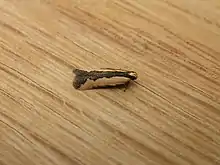 The wingspan is about 9 mm (0.35 in). The forewings are shining whitish-ochreous with five oblique dark fuscous marks or spots on the costa, the basal minute, the others larger posteriorly, last two confluent. There is a broad dark fuscous dorsal streak from the base to the tornus, with the extremities pointed and the upper edge projecting at one-fourth and more strongly at two-thirds. There is also a dark fuscous spot along the termen beneath the apex. The hindwings are whitish-grey.[2]