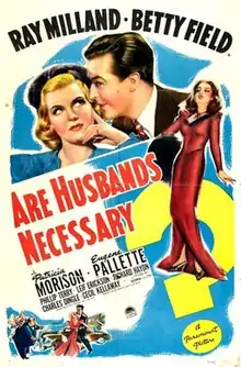 Are Husbands Necessary? is a 1942 American comedy film directed by Norman Taurog and starring Ray Milland and Betty Field.[3] It follows the misadventures of a wacky wife and her sometimes exasperated, but loving, banker husband. The film's screenplay was adapted by the husband-and-wife writing team of Tess Slesinger and Frank Davis, from the novel Mr. and Mrs. Cugat, the Record of a Happy Marriage by Isabel Scott Rorick. This novel would later be a source for the related 1948 radio series My Favorite Husband starring Lucille Ball, which itself would evolve into the television series I Love Lucy.
