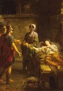 After Dion's assassination in 353 BCE, Arete was imprisoned together with her mother and brought forth a son while in confinement. Arete and Aristomache were subsequently liberated and kindly received by Hicetas of Leontini, one of Dion's friends, but he was afterward persuaded by the enemies of Dion to drown them.[1][2]