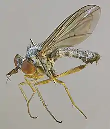 - ↑ Fonseca, D'Assis , E. C. M. (1978). "Dolichopodidae (Diptera, Orthorrhapha, Brachycera)" (PDF). Handbooks for the Identification of British Insects. London: Royal Entomological Society of London. 9 (5): 1–90. Archived from the original (PDF) on 26 April 2021. Retrieved 7 July 2018.