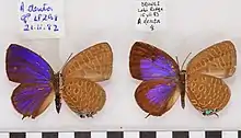 | Arhopala denta male and female | |