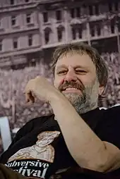 Heralić on an official 2013 Subversive Festival T-shirt, worn here by Slavoj Žižek
