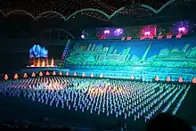 The Grand Mass Gymnastics and Artistic Performance Arirang[2] (Korean: 아리랑 축제), also known as the Arirang Mass Games,[3] or the Arirang Festival[4] is a mass gymnastics and artistic festival held in the Rungrado May Day Stadium in Pyongyang, North Korea. The games usually take place in August or September. The Arirang Mass Games were held annually between 2002 and 2013, with the exception of 2006. After a five-year hiatus, Mass Games returned for a performance entitled 'The Glorious Country' in 2018.