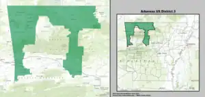 Arkansas's 3rd congressional district is a congressional district in the U.S. state of Arkansas. The district covers Northwest Arkansas and takes in Fort Smith, Fayetteville, Springdale, and Bentonville.