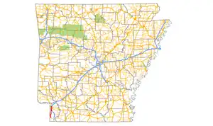 - 1 2 Planning and Research Division (2010). "Arkansas Road Log Database". Arkansas State Highway and Transportation Department. Archived from the original (Database) on 23 June 2011. Retrieved June 9, 2011.