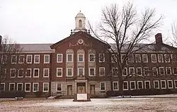 The school occupies a red brick building visible from Interstate 30 (West Freeway).[3]