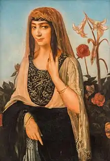 While in Iran, she perfected her skills in Oriental dances. After leaving the country and touring Egypt and the Ottoman Empire, she was hired to perform in London in 1911. From then to the late 1920s she would become quite a sought-after name, as part of the craze for exotic dances that swept the Western cultural scene at the time. By using methods of "free dance" developed by the famous American dancer Isadora Duncan, she created her own choreography based on Armenian and Iranian music. Many of her dances, such as "Salome," "At the Temple of Anahit," "Treason," "The Matchmaker," "Haschich," "The Great Khan of Shamakha," "Towards Nirvana," and others, fascinated the European public. She performed "wonderful Persian Dances" in a production of Lakmé at the London Opera House in 1915.[1] She performed extensively in London, Paris, Brussels, Milan, Sofia, Madrid, and other European cities, as well as in the United States and Mexico. Her performances were widely covered in the press and met the approval of writers such as Maurice Maeterlinck, René Ghil, Claude Anet, and others.