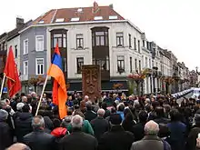 On 23 April 2015, the Flemish Parliament of Belgium unanimously adopted a resolution to fully recognize the Armenian genocide. The motion was put forward by all political parties of Flanders. The motion further called on Turkey to recognize the massacres as a genocide.[12] In 1997, an Armenian khachkar was erected in the square Henri Michaux, Brussels to commemorate the victims of the Armenian genocide.