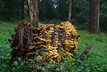 - 1 2 Pearce MH, Malanjczuk N (1989). "Stump colonization by Armillaria luteobubalina and other wood decay fungi in an age series of cut-over stumps in Karri (Eucalyptus diversicolor) regrowth forests in south-western Australia". New Phytologist. 115 (1): 129–38. doi:10.1111/j.1469-8137.1990.tb00930.x. JSTOR 2557060.