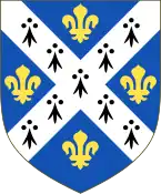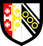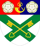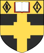 The arms feature St Cuthbert's cross, referencing the link to Durham Cathedral (the shrine of St Cuthbert) and, in the canton, the arms of Bishop Hatfield of Durham, the founder of Durham College, Oxford, advancing the idea that the university is its successor institute.[24][25] St Cuthbert's Cross was used as the university's seal prior to the grant of arms and appears on the coats of arms of many Durham colleges, as well as those of Newcastle University.