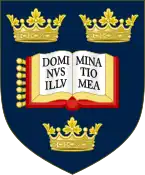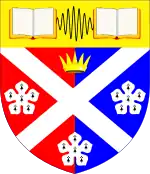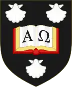 The armorial of British universities is the collection of coats of arms of universities in the United Kingdom. Modern arms of universities began appearing in England around the middle of the 15th century, with Oxford's being possibly the oldest university arms in the world, being adopted around the end of the 14th century.[1] The earliest granting of university arms was to King's College Cambridge by Henry VI in 1449.[2][3][4] Arms are granted by the College of Arms[5] and Lyon Court. It has been suggested that new universities register arms in an attempt to appear more traditional or legitimate.[6] As corporations, older university arms have historically been granted without a crest, however newer institutions use crests with mantling, including new colleges at older universities.[7][8][9] The first crest granted to a university was to Leeds in 1905 while the first British university to be granted supporters was Sussex in 1962, although both Oxford and Cambridge have used angels as supporters and Cambridge has used the 'alma mater' emblem as a crest without these components being officially granted.[10]